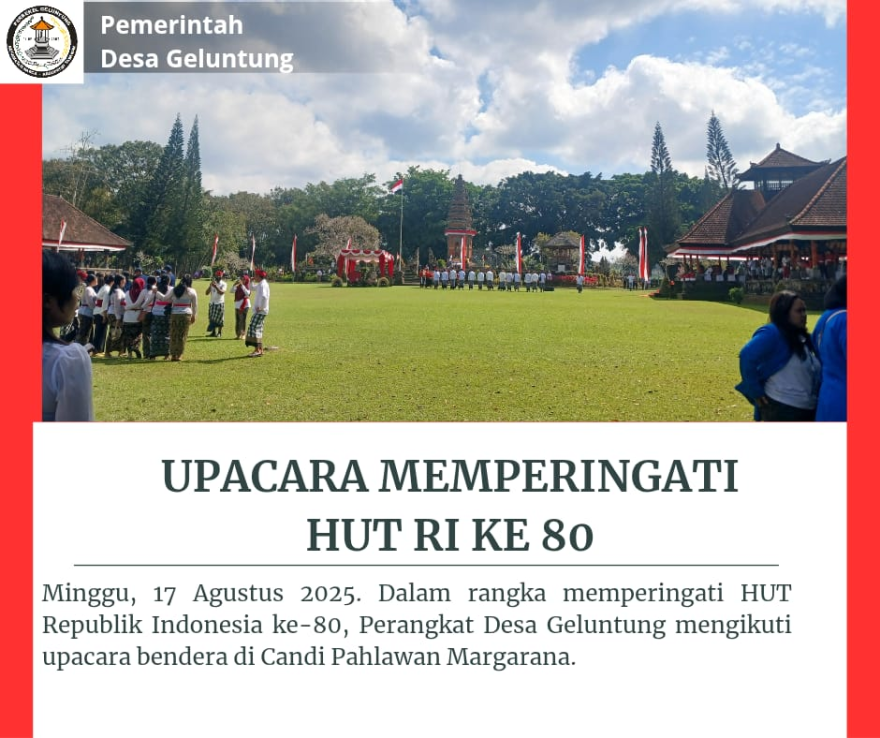 Minggu, 17 Agustus 2025. Dalam rangka memperingati HUT Republik Indonesia ke-80. Perangkat Desa Geluntung mengikuti upacara bendera di Candi Pahlawan Margarana.
