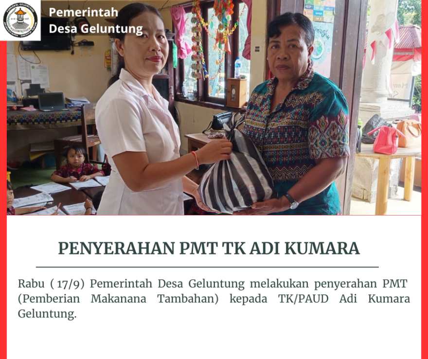 Pemerintah Desa Geluntung melakukan penyerahan PMT (Pemberian Makanana Tambahan) kepada TK/PAUD Adi Kumara Geluntung